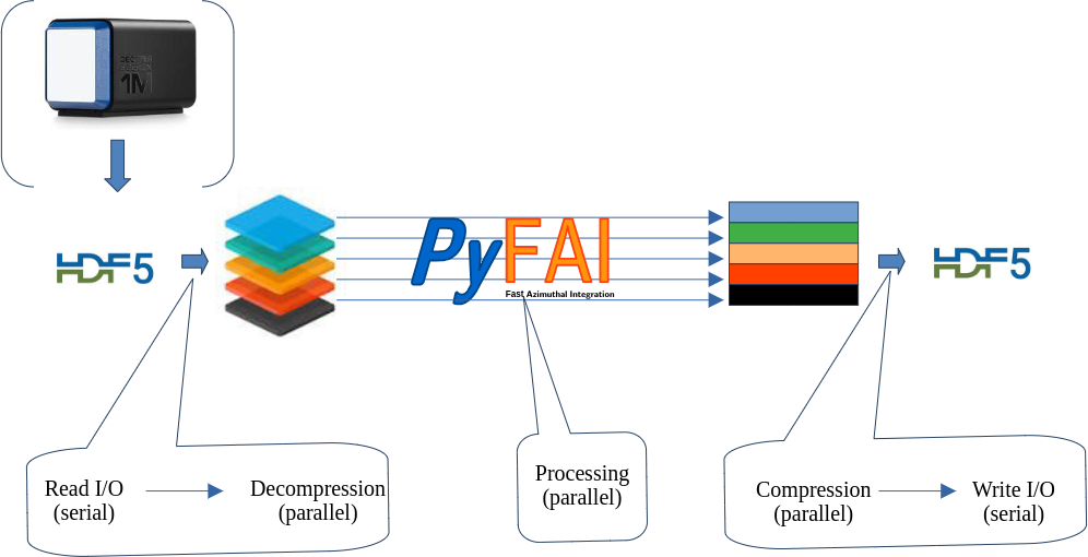 The procedure is a bit tedious but not out of reach for a Python programmer: few threads and a couple of queues. This burden is worth when coupling decompression with azimuthal integration to reduce the amount of data stored in memory.