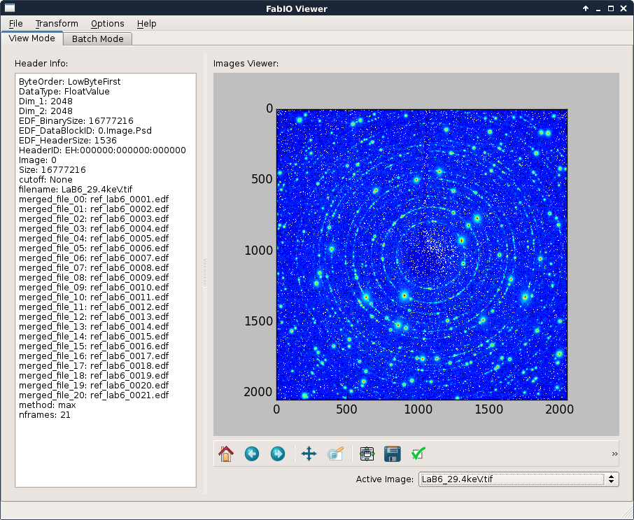 $ pyFAI-average -m max -F tif -o LaB6_29.4keV.tif ref_lab6_00??.edf