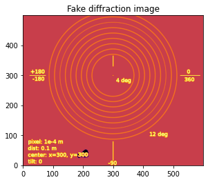 To perform an azimuthal integration of this image, we need to create an AzimuthalIntegrator object we will call ai. Fortunately, the geometry is explained on the image.