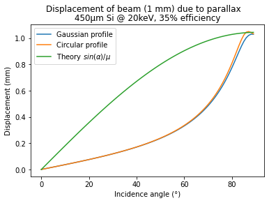 s = Decay(0.45, 0.35) #450µm, 35% efficiency 450µ Si @ 20keV
