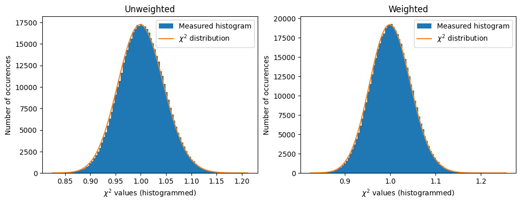 ax.set_xlabel("$\chi^{2}$ values (histogrammed)")