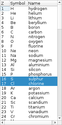 PeriodicTable.PeriodicList is a QTreeWidget designed to select one or more atomic elements.
