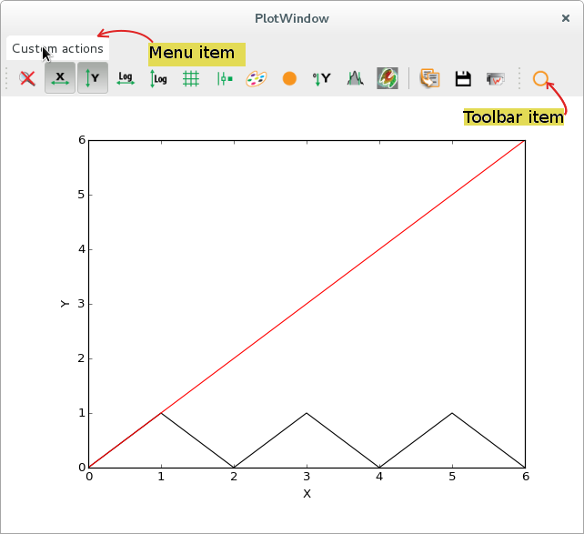 Developers can design additional plot actions to be added as toolbar icons or as menu entries,
