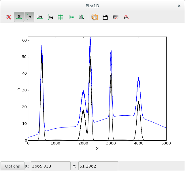 In our previous example, we didn’t load a custom FitManager. Therefore, the fit widget automatically initialized a fit manager and loaded the custom gaussian functions.
